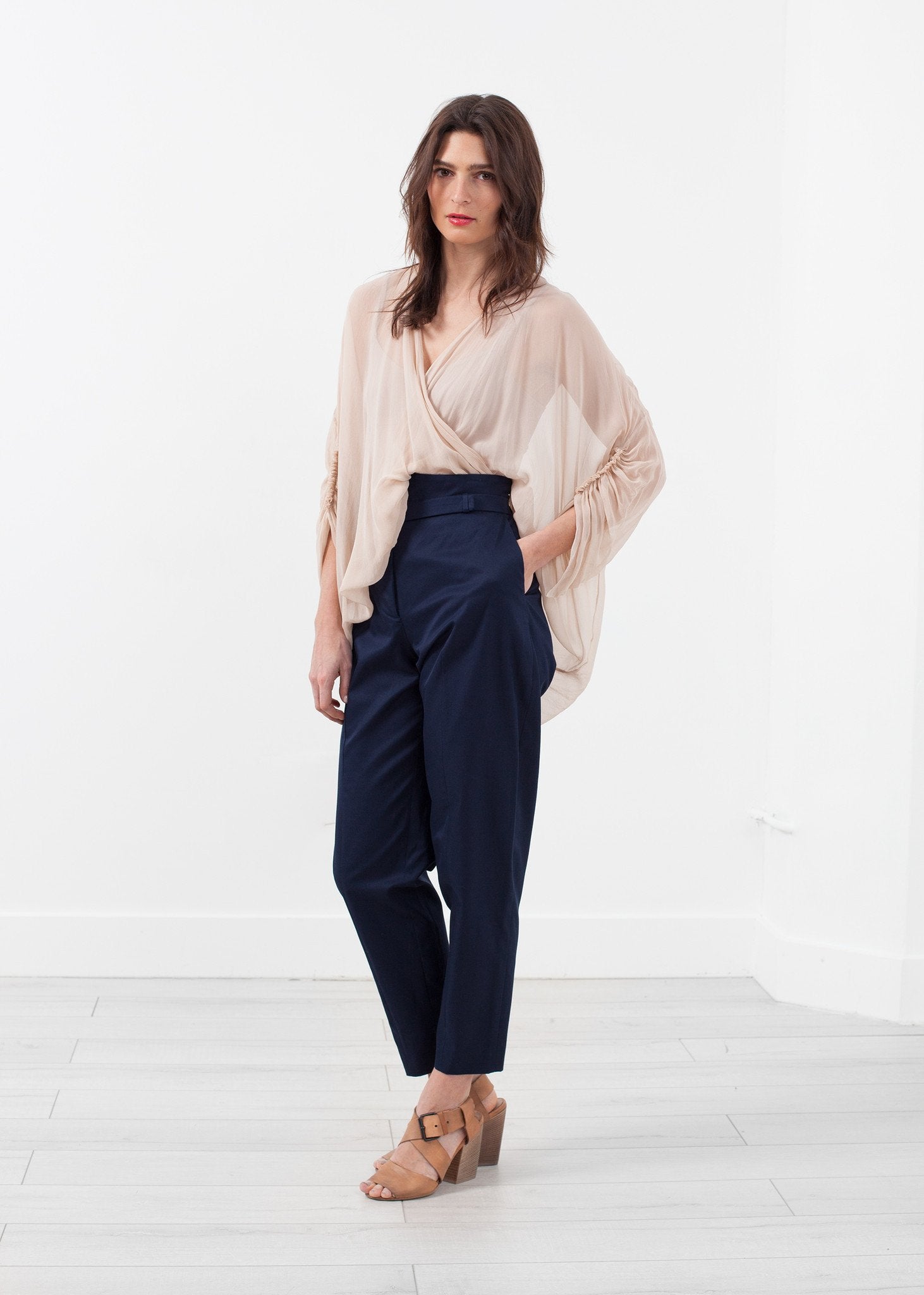Louiza Babouryan offers a sweet cacophony of artistic vision for her Spring/Summer 2015 line. Dreamy pieces paired with flowing silhouettes invites to indulge on that delicious side. The Twist Top is the needed finish for a night out. Deep V-neckline. Delicate gathers on sleeves. Color Sand. 100% Silk. Made in U.S.A. Lana is wearing an X-Small.